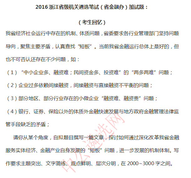 中公浙江人事考试信息网·浙江遴选考试网提醒您关注浙江遴选考试题库:【浙江遴选考试题库:2016浙江省级机关遴选公务员笔试真题】